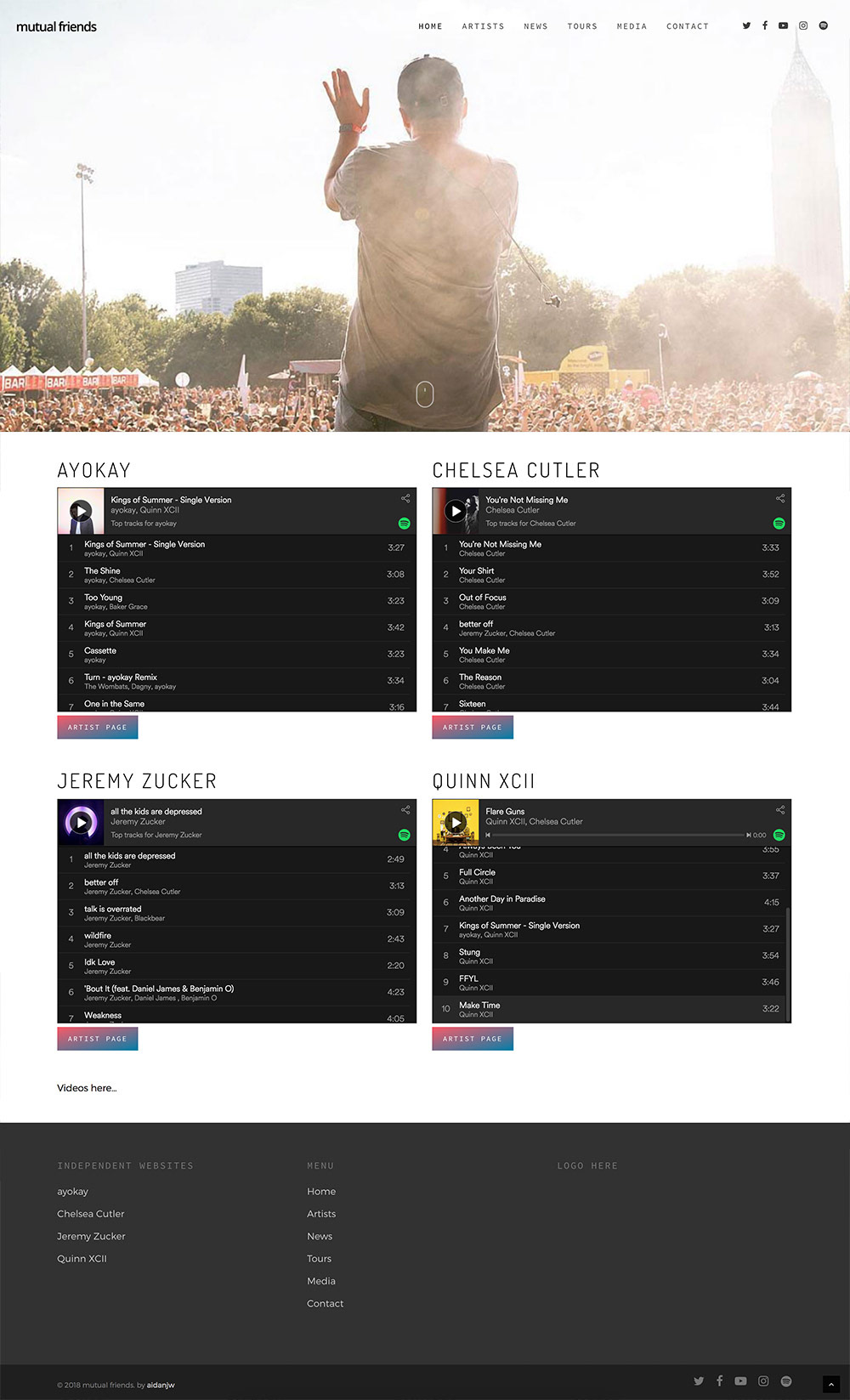 Execution: Integrated multiple APIs from Spotify and embedded custom tour listings to create a seamless user experience.